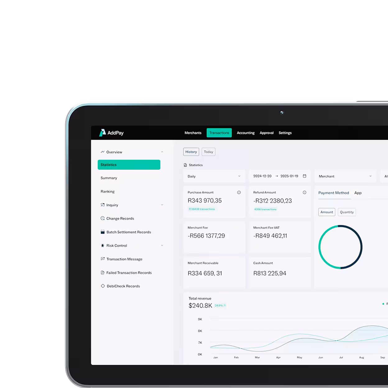 Easily set up recurring payments with our Collections Platform. Set up EFT debit orders and recurring card payments or use DebiCheck on your AddPay POS device.